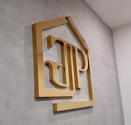 At Al Tayyeb Neon, we provide interior 3D logos, glass frosting, vinyl wall graphics, desk nameplates, and safety signs.